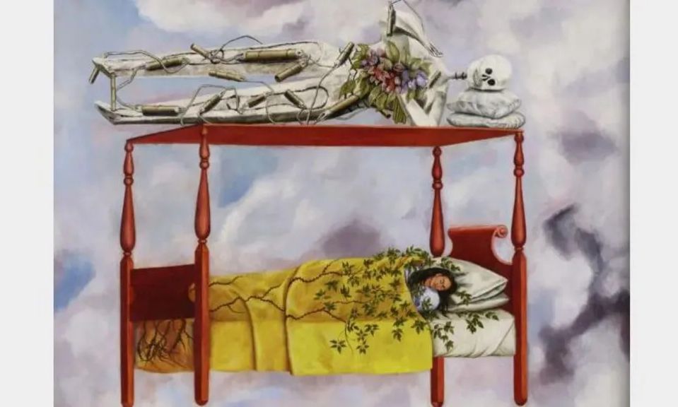 Το έργο, με τίτλο El sueño (La cama) – «Το όνειρο (Το κρεβάτι)» – απεικονίζει την Κάλο να κοιμάται σε ένα κρεβάτι με ουρανό, κάτω από έναν σκελετό τυλιγμένο με δυναμίτες.