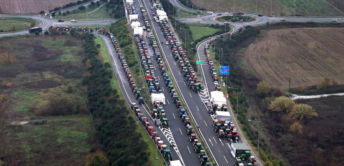 Στην περιοχή του Λογγού, πάνω από 500 τρακτέρ έχουν συγκεντρωθεί στα διόδια στον αυτοκινητόδρομο Ε65.
