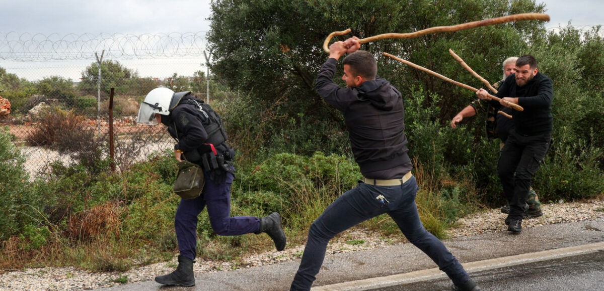 Ο φωτογραφικός φακός κατέγραψε επίθεση αγρότη κατά αστυνομικού της δύναμης των ΜΑΤ με… κατσούνα.