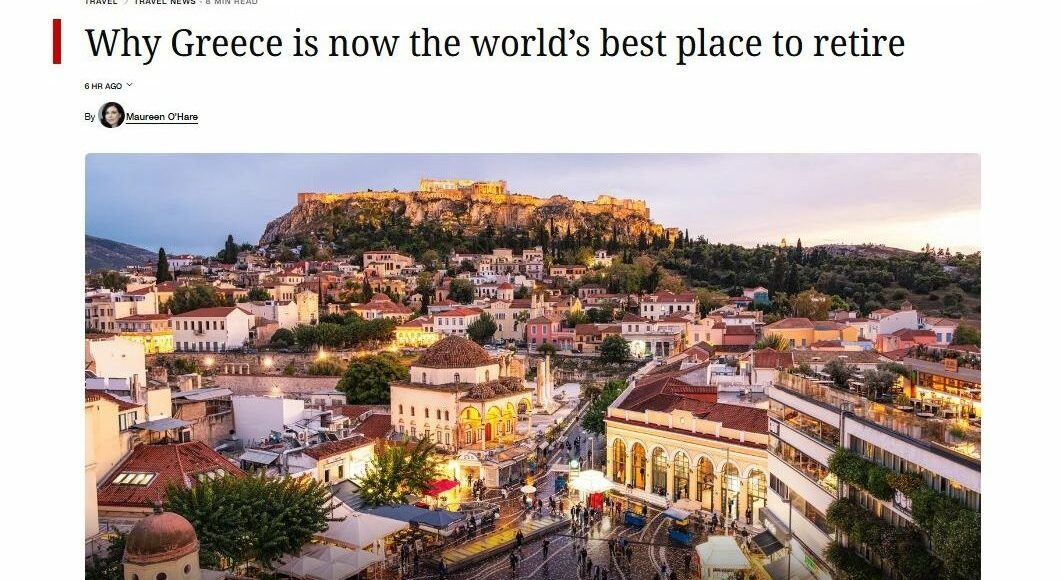 Η Ελλάδα αναδείχθηκε ως ο καλύτερος προορισμός παγκοσμίως για συνταξιοδότηση το 2026, σύμφωνα με τον Ετήσιο Παγκόσμιο Δείκτη Συνταξιοδότησης που δημοσιεύει το CNN σε συνεργασία με την πλατφόρμα International Living.