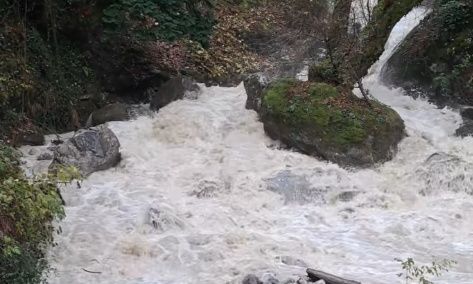 Μετά από τριάντα ώρες συνεχούς βροχόπτωσης, χείμαρρος υπερχείλισε κοντά στην Μονή Στομίου στην Κόνιτσα, με αποτέλεσμα να έχει αποκλειστεί.