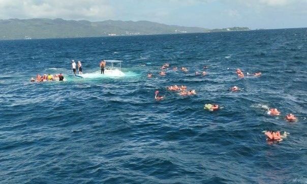 Δεκάδες άνθρωποι έμειναν να επιπλέουν τρομοκρατημένοι στη θάλασσα της Καραϊβικής, όταν η ημερήσια εκδρομή τους μετατράπηκε σε εφιάλτη, μετά τη βύθιση του καταμαράν στο οποίο επέβαιναν.