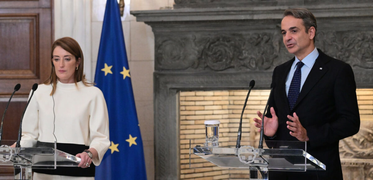 Ο πρωθυπουργός Κυριάκος Μητσοτάκης συναντήθηκε στο Μέγαρο Μαξίμου με την πρόεδρο του Ευρωπαϊκού Κοινοβουλίου Ρομπέρτα Μετσόλα.