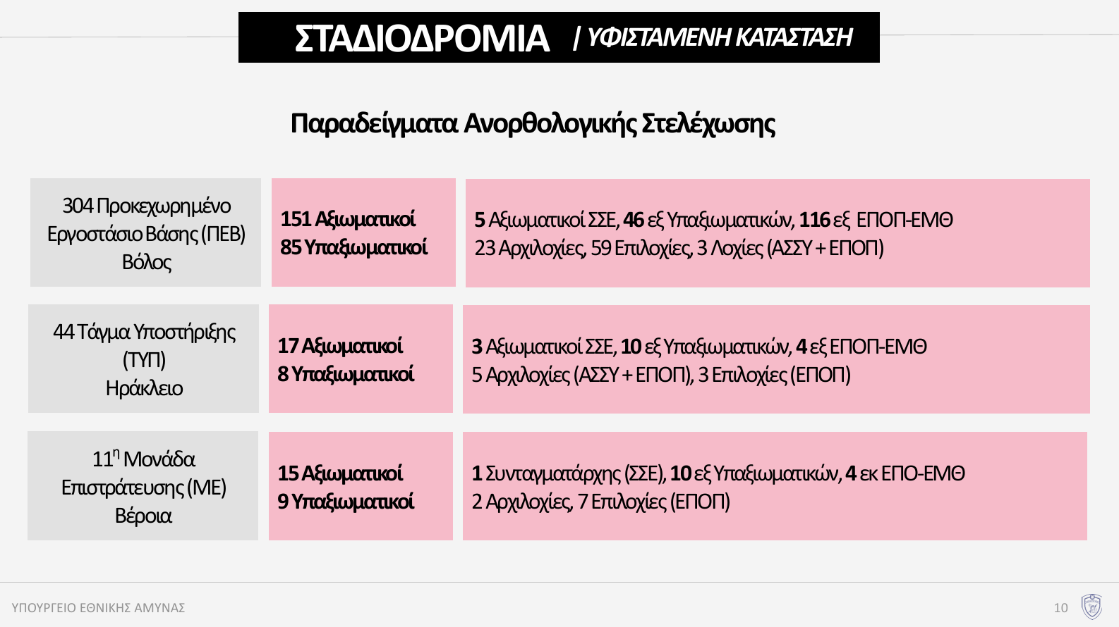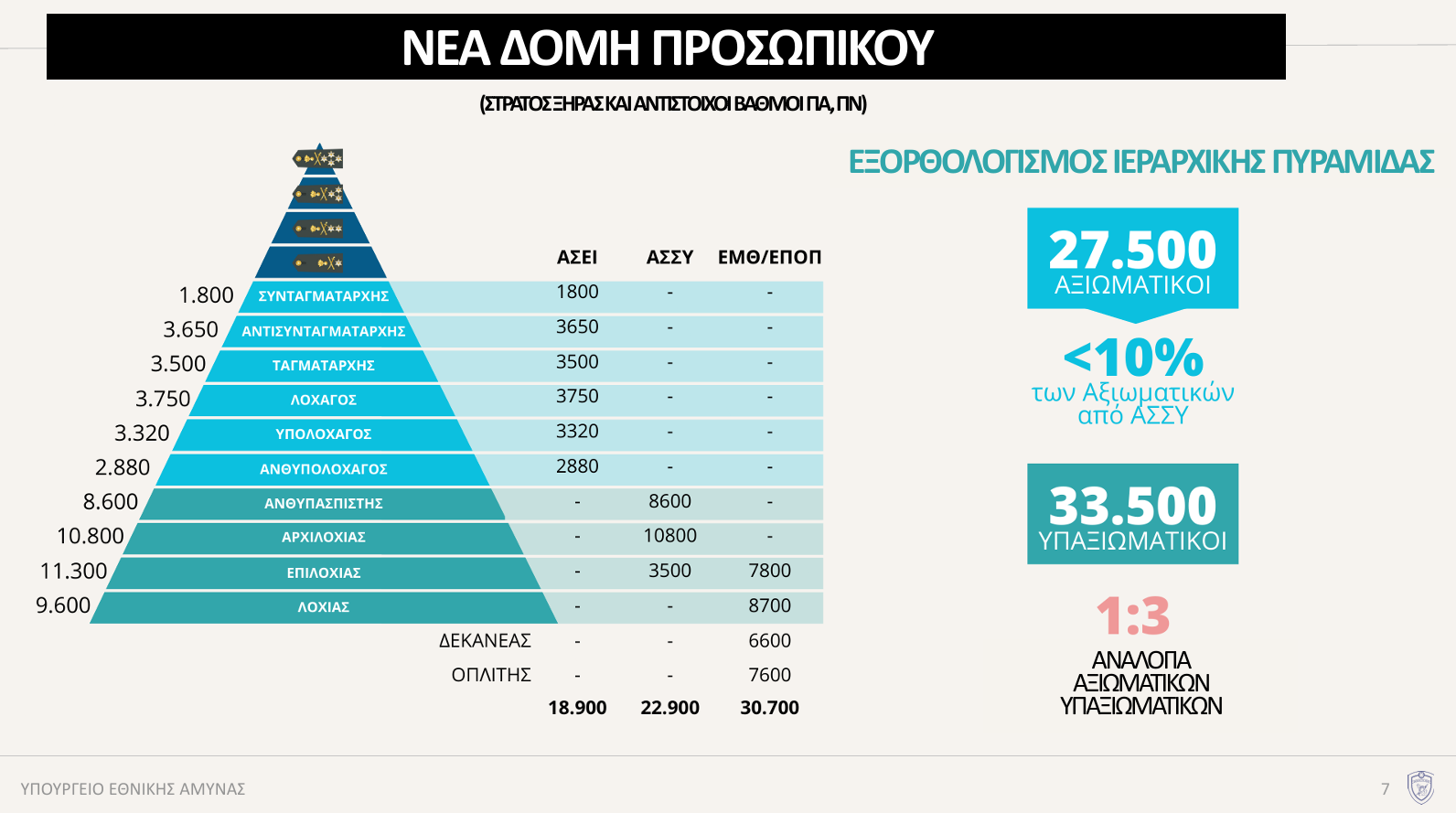 • Συγκρότηση σύγχρονης, ενεργού εφεδρείας.