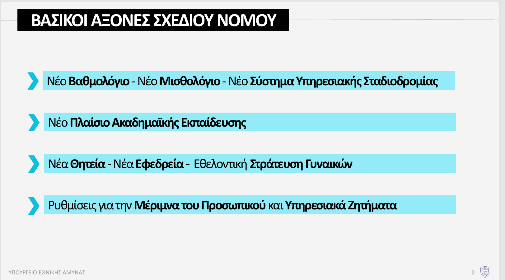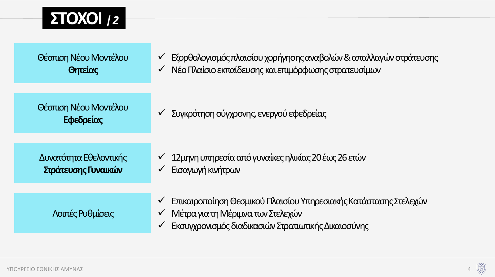• Νέα Θητεία – Νέα Εφεδρεία – Εθελοντική Στράτευση Γυναικών.