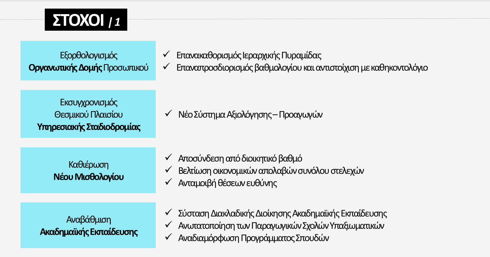• Ανωτατοποίηση των Παραγωγικών Σχολών Υπαξιωματικών.