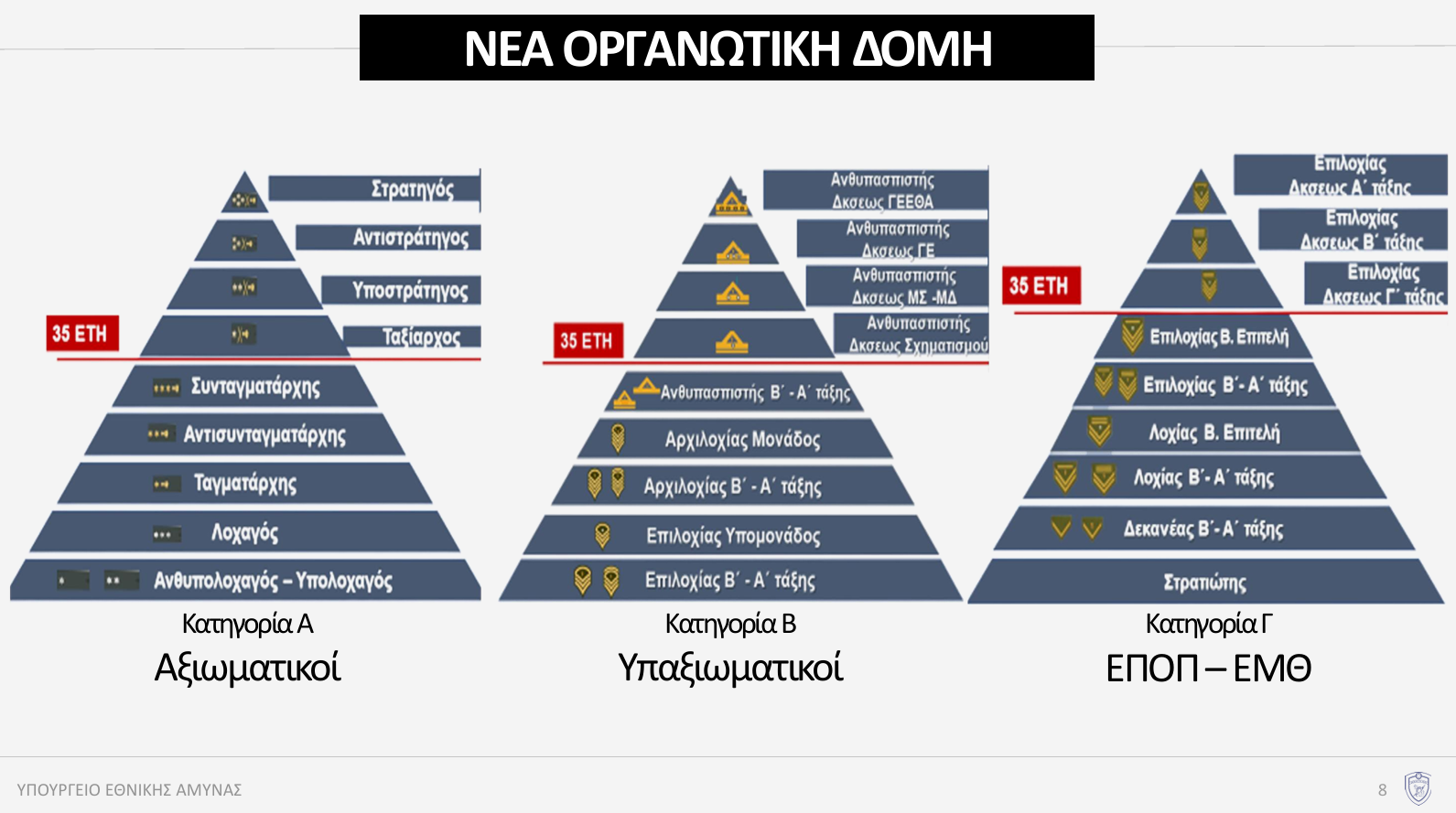 Συνοπτικά οι αλλαγές που προβλέπονται στις Ένοπλες Δυνάμεις κωδικοποιούνται ως εξής: