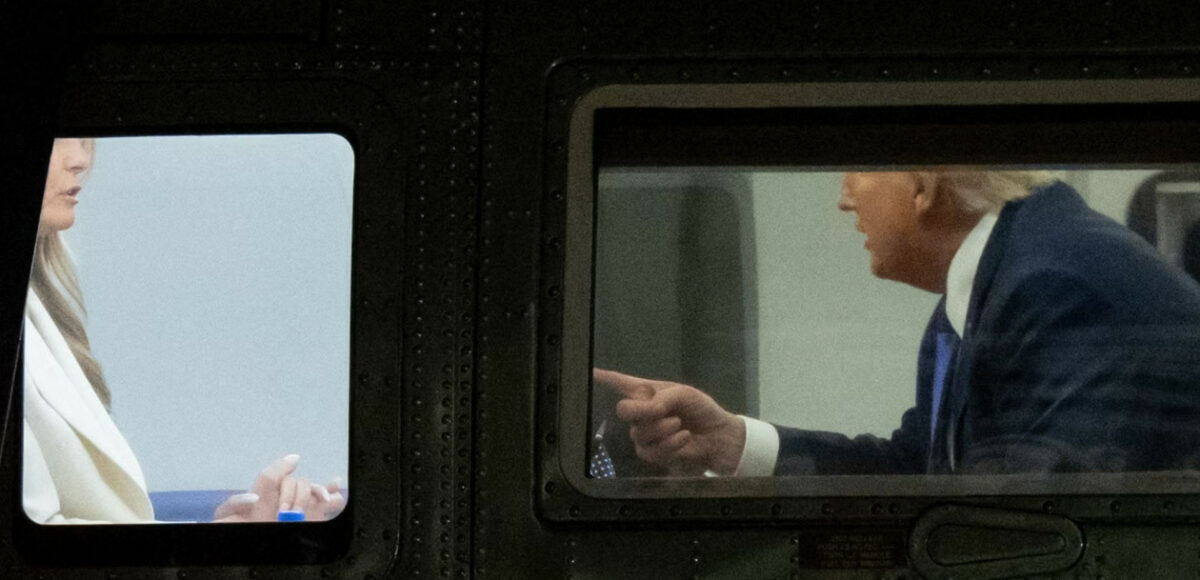 Συγκεκριμένα, οι κάμερες «έπιασαν» τη Μελάνια να κουνάει το κεφάλι της και να κάνει χειρονομία προς τον Ντόναλντ Τραμπ, προτού εκείνος τη διακόψει με μία κίνηση του χεριού του, κουνώντας το δάχτυλο. Ωστόσο, αφού ολοκλήρωσαν τη συζήτηση, αποβιβάστηκαν από το ελικόπτερο πιασμένοι χέρι – χέρι, ενώ ο Αμερικανός πρόεδρος χαιρέτησε τους δημοσιογράφους.