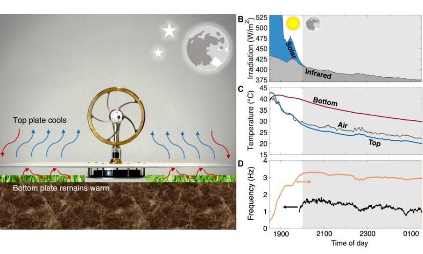 Οι ερευνητές τοποθέτησαν τη βάση του κινητήρα στο έδαφος, το οποίο παραμένει σχετικά ζεστό μετά τη δύση του ηλίου, και επικαλύπτηκαν την επάνω πλάκα με ειδική βαφή υπερύθρων, αφήνοντάς την εκτεθειμένη στον νυχτερινό ουρανό. Σε καθαρές νύχτες, η επάνω πλάκα ψύχθηκε γρήγορα, με τις μετρήσεις να δείχνουν πτώσεις θερμοκρασίας έως 10 °C.