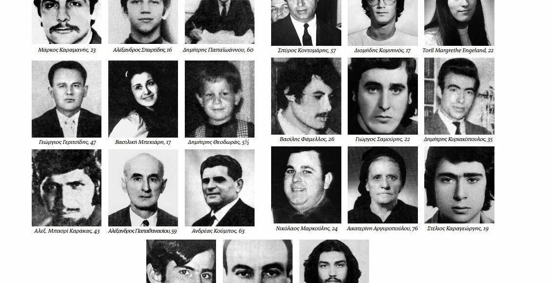 24. Ο 44χρονος δικηγόρος Κυριάκος Παντελεάκης, από τις Κροκεές Λακωνίας, κάτοικος Αθηνών, ενώ βάδιζε στη διασταύρωση των οδών Πατησίων και Γλάδστωνος τραυματίστηκε θανάσιμα από πυρά προερχόμενα από άρμα μάχης. Μεταφέρθηκε στο Ρυθμιστικό Κέντρο Αθηνών, όπου απεβίωσε στις 27/12/1973.