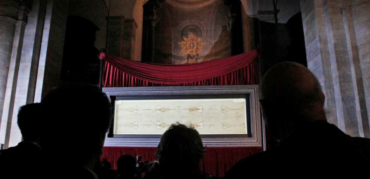 Η Σινδόνη του Τορίνο, μήκους 4,5 μέτρων, διαφημίζεται ως περιτύλιγμα που χρησιμοποιήθηκε για το σώμα του Ιησού μετά τη σταύρωση, η οποία απεικονίζει ένα αχνό, αιματοβαμμένο μοτίβο ενός άνδρα με τα χέρια του σταυρωμένα μπροστά.