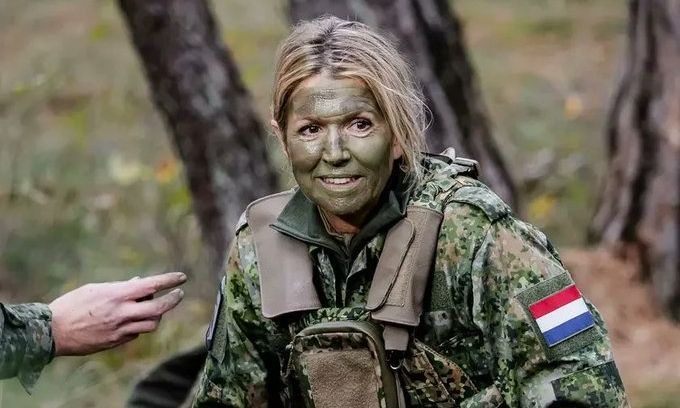 Φορώντας στρατιωτική παραλλαγή και φούμο στο πρόσωπο, η βασίλισσα Μάξιμα της Ολλανδίας εμφανίστηκε σχεδόν αγνώριστη την Τρίτη σε κέντρο εκπαίδευσης των ολλανδικών ενόπλων δυνάμεων κοντά στο Άμστερνταμ.