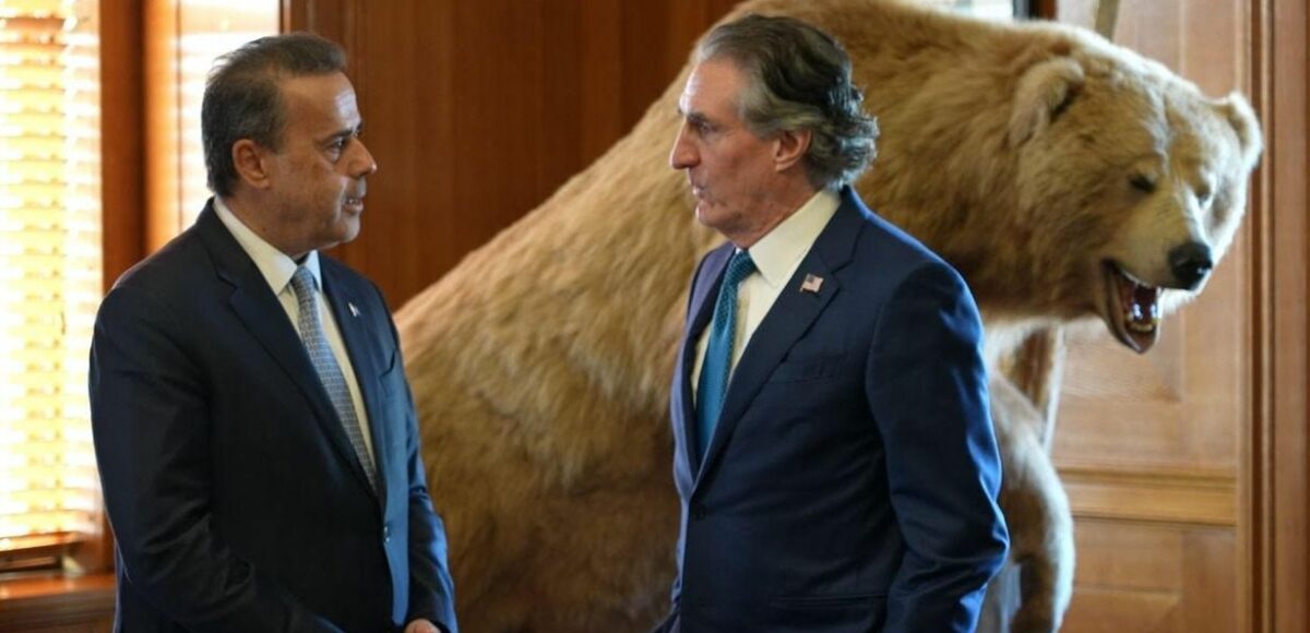 Δεν μπορούσε να περάσει απαρατήρητη – από κανέναν – η ταριχευμένη πολική αρκούδα, στο υπόβαθρο της φωτογραφίας του Υπουργού Περιβάλλοντος και Ενέργειας Σταύρου Παπασταύρου με τον Υπουργό Εσωτερικών των ΗΠΑ και Επικεφαλή του National Energy Dominance Council Doug Burgum στο υπουργείο Εσωτερικών των ΗΠΑ.