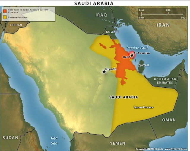 Το ίδιο περίπου έργο βλέπουμε και μερικά χρόνια αργότερα στην Ανατολική Επαρχία της Σαουδικής Αραβίας, με την Σαουδική Αραβία να έχει χαλάσει την συμμαχία της με τις ΗΠΑ, και τους Ιρανούς να ξεσηκώνουν τους Σιίτες της Ανατολικής Επαρχίας της Σαουδικής Αραβίας. Ο Σιίτης κληρικός που αποκεφάλισαν πρόσφατα οι Σαουδάραβες είχε πρωτοστατήσει στους ξεσηκωμούς των Σιιτών στην Σαουδική Αραβία το 2011, όταν ξεκινούσε η Αραβική Άνοιξη. Για τον ξεσηκωμό των Σιιτιών στην Σαουδική Αραβία βλέπε “2011–12 SaudiArabian protests”en.wikipedia.org