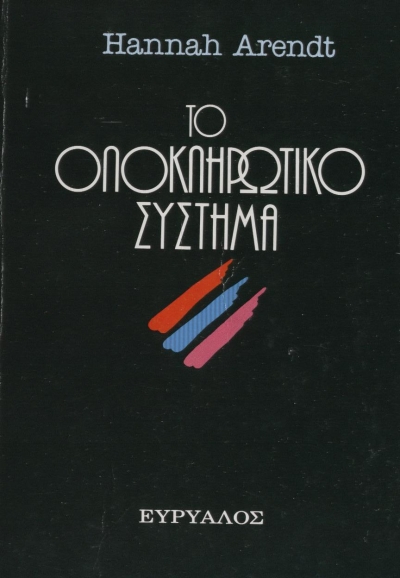Στο έργο της “Το ολοκληρωτικό σύστημα” (Εκδ ΕΥΡΥΑΛΟΣ το τρίτο μέρος από τη μελέτη της “Πηγές του ολοκληρωτισμού -The Origins of Totalitarianism”) που δημοσιεύθηκε το 1951, είναι μια μελέτη που άνοιξε σε μια άλλη βάση την ευρύτατη διεθνή συζήτηση σχετικά με τη φύση, τη δομή και τα ιστορικά προηγούμενα του ολοκληρωτισμού. Το βιβλίο βασίστηκε στη μελέτη της συγκρότησης των δομών και της νοοτροπίας τόσο του εθνικοσοσιαλιστικού, όσο και του σοβιετικού κρατικού υποδείγματος. Η επιστημονικά τεκμηριωμένη διάγνωση της μεθοδολογίας επιβολής των ανελεύθερων και αυταρχικών μορφών διακυβέρνησης, όπως περιγράφεται στο βιβλίο της Αρέντ, δημιουργεί την πεποίθηση ότι η ανθρωπότητα και ο πολιτισμός έχουν στα χέρια τους ένα πολύτιμο όπλο για να αντιπαλέψουν τον αυταρχισμό.