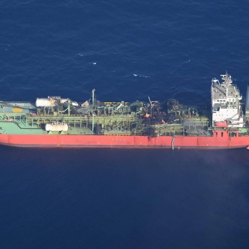 Το πλοίο μεταφοράς υγραερίου MV FALCON που έπλεε στα ανοικτά των ακτών της Υεμένης εξακολουθεί να φλέγεται και να παραμένει ακυβέρνητο.