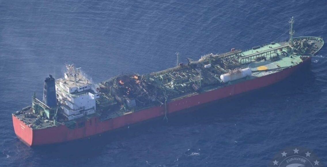 Το πλοίο μεταφοράς υγραερίου MV FALCON που έπλεε στα ανοικτά των ακτών της Υεμένης εξακολουθεί να φλέγεται και να παραμένει ακυβέρνητο.